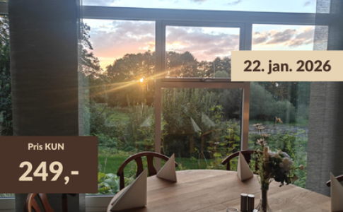 Glæd jer til en hyggelig aften i godt selskab, fyldt med klassiske smagsoplevelser, nærvær og varme rammer.